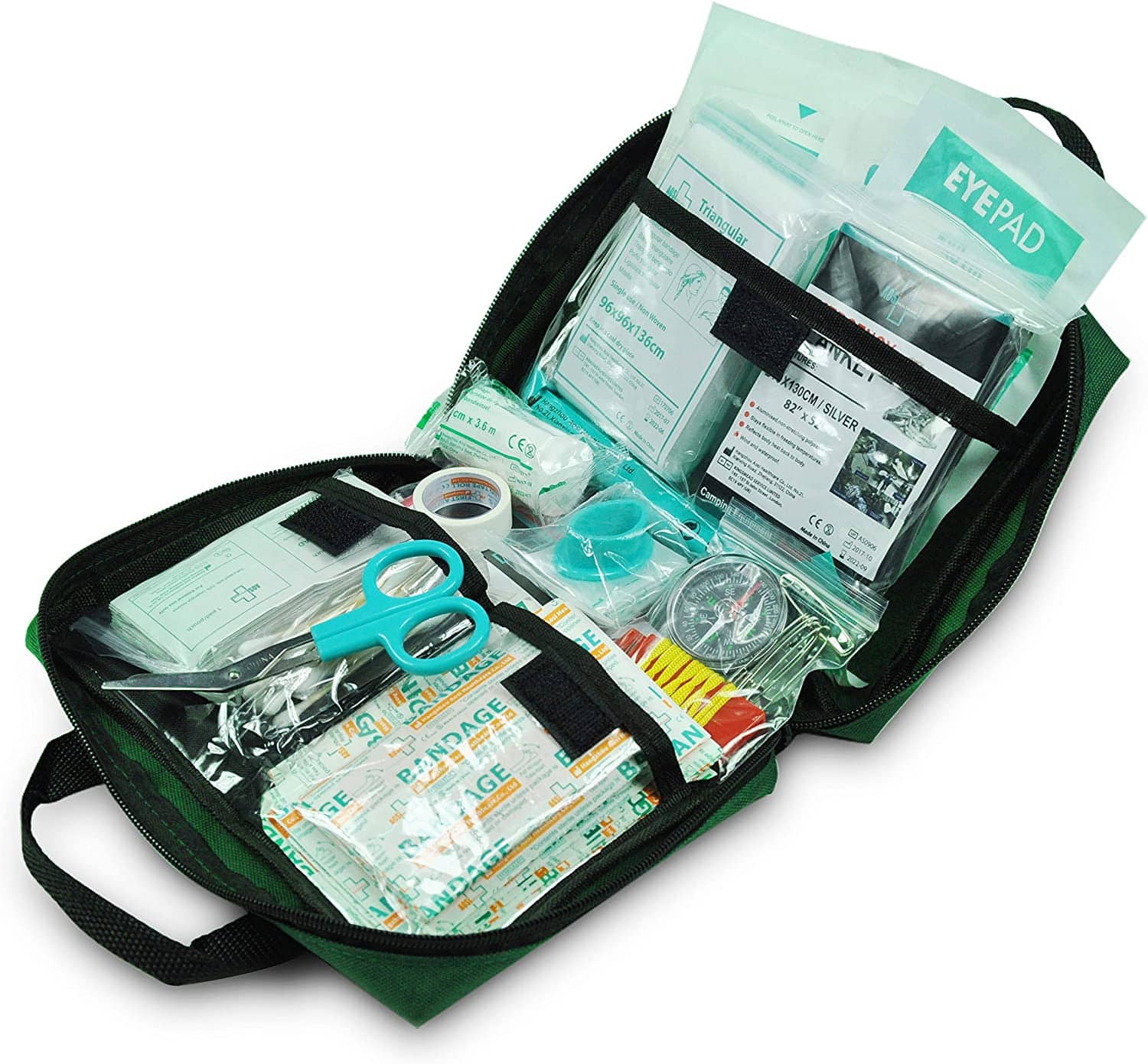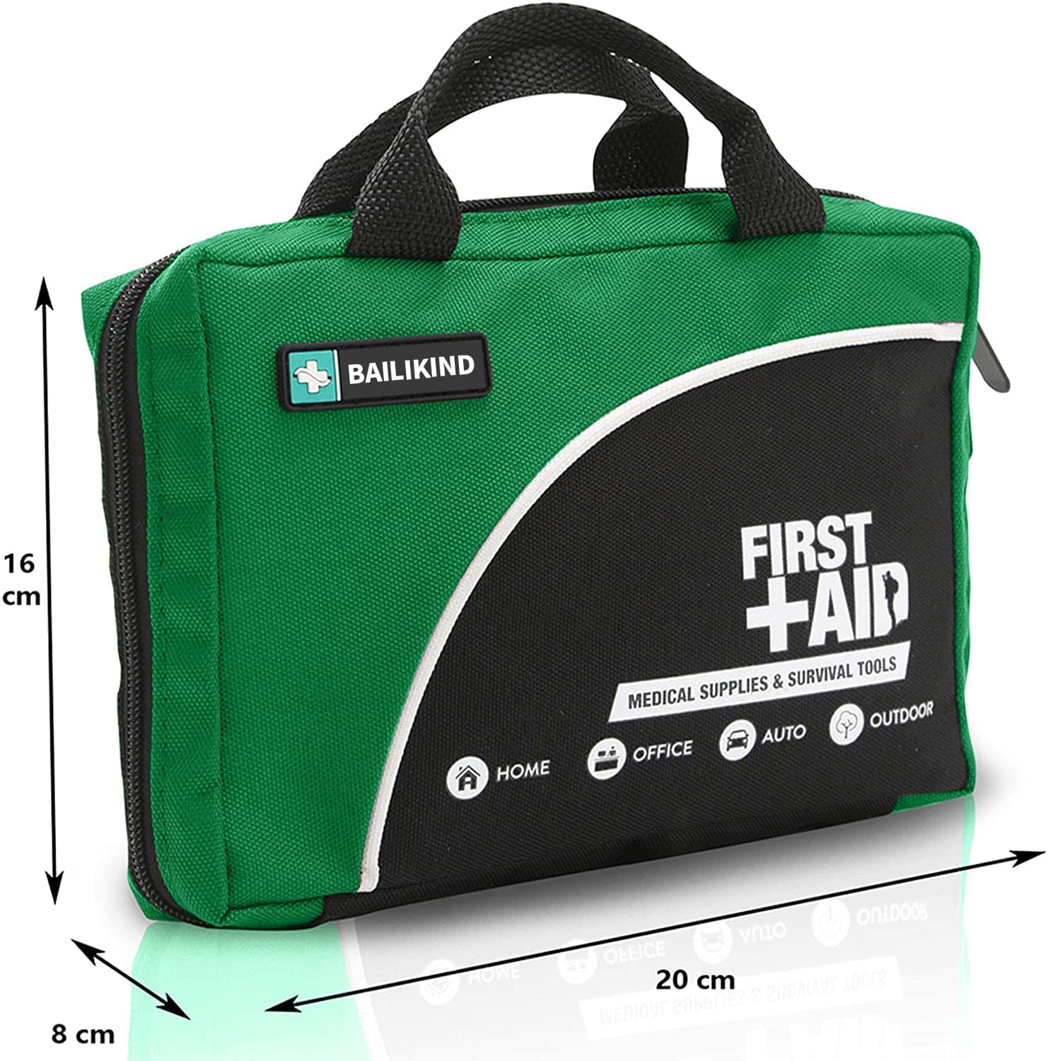 टिकाऊ आणि हलके - (7.8" x 6.3" x 3.1", वजन फक्त 1.1 पौंड आहे). पिशवी मजबूत, कॉम्पॅक्ट आणि वाहून नेण्यास सोपी आहे, सर्व प्राथमिक प्रथमोपचार पुरवठा (एकूण 160 तुकडे) आहे. ती व्यवस्थित आहे. अनेक कंपार्टमेंट्स आणि जेव्हा आवश्यक असेल तेव्हा आणखी आयटम जोडण्यासाठी अतिरिक्त जागा आहे.